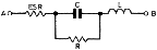 Fig. 2: Simplified equivalent circuit of an electrolytic capacitor. A and B are the terminals, C is the effective capacitance, R is the shunt resistance (insulation resistance) through which d.c. leakage current flows, ESR is the equivalent series resistance and L the capacitor's self-inductance due to its terminals, electrodes and geometry.