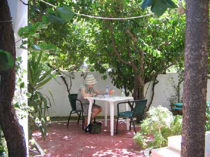 The garden area provides many shaded areas where you can sit or lie, to read or talk. To book a stay or simply enquire, contact the Zygos hotel at zygos86 [at] yahoo.gr Tel +30 (28230) 42402 Alternatively, you can contact Kosmar travel agents who will arrange a complete package holiday for you. Be sure to insist on staying at the Zygos! |
