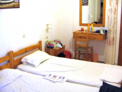 All rooms have comfortable beds and furniture, including a kitchen area with sink, cooking hob and cupboards. The bathroom has a modern W.C., shower and sink, with cold and hot water. A television with satellite TV reception of many European stations (including BBC World) lets you keep up with the news at home. Air conditioning is available at extra cost. However, Paleohora delights in cool sea breezes which make air conditioning unnecessary most of the time. |